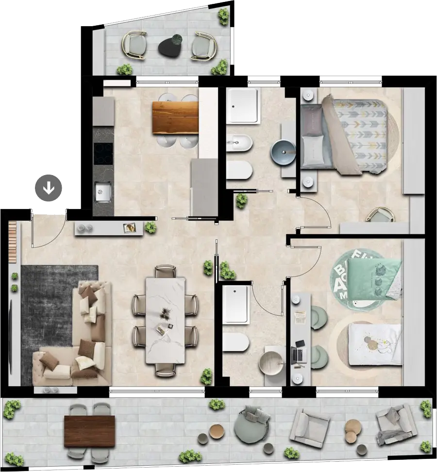 Gli appartamenti sono disponibili con diverse soluzioni su più piani.